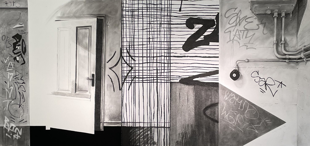 Moritz Dümmel Türen stehen im Zentrum der Kunst Moritz Dümmels. Beobachtungen im Alltag und auf Reisen dienen als Ausgangspunkt für Zeichnungen, die verblüffenden Detailrealismus mit verfremdender Reduktion und Abstraktion verbinden. Das Motiv verspricht Einblicke, die die Werke jedoch konsequent verweigern. Die Türen sind verschlossen oder öffnen sich in undurchdringliches Dunkel. Was jenseits der Schwelle liegt, bleibt unsichtbar – und eröffnet gerade dadurch vielfältige Ideenräume im Übergang von Innen und Außen: sei es der Zugang zu Privatem, Heimlichen und auch Unbewussten oder der Ausweg ins Freie, Offene, Unbekannte. Neueste Werke thematisieren zudem den Verlust von Zuflucht und Heimat.