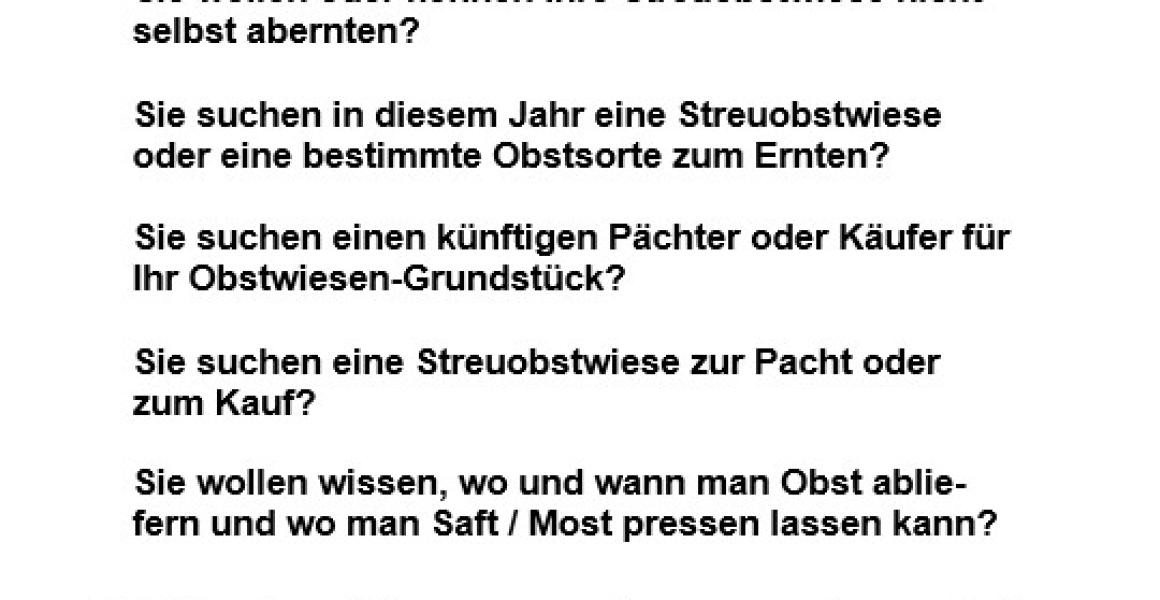 - einen künftigen Pächter oder Käufer für ihre Obstwiese suchen oder