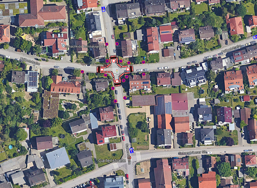 Vollsperrung des Kreuzungsbereichs Fröbelstraße und Gartenstraße, aufgrund von Arbeiten an der Gashochdruckleitung.