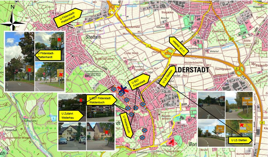 Informationen zu Vollsperrungen finden Sie jeweils unter der Rubrik in den Stadtteilen Bernhausen und Sielmingen.