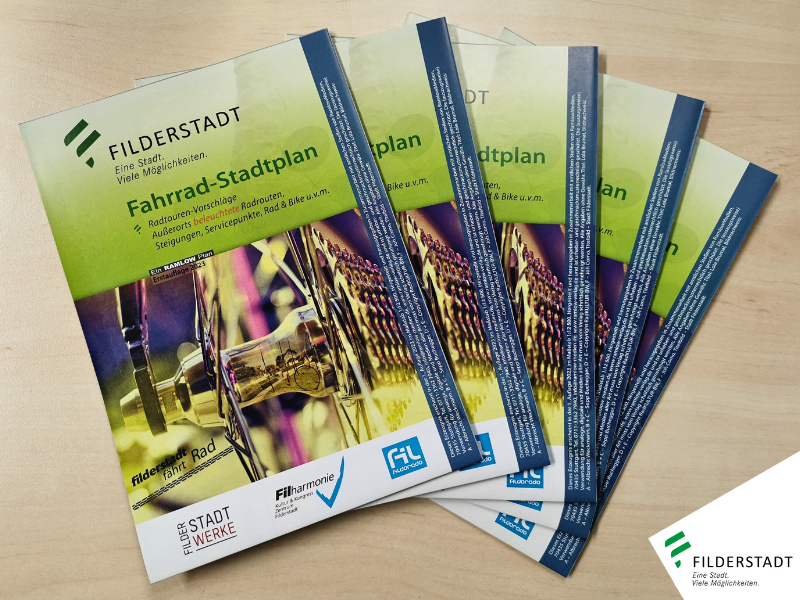 Filderstadt hat einen neuen Stadtplan mit Radtouren-Vorschlägen, außerorts beleuchteten Radrouten, Steigungen, Servicepunkten u.v.m.. Den Fahrrad-Stadtplan finden Sie in allen Bürgerämtern und im Rathaus Plattenhardt. Sie können sich aber auch gerne bei uns direkt melden, um den Stadtplan zu erhalten.