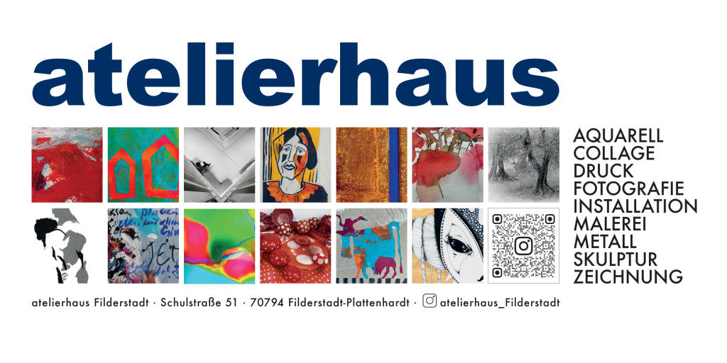 Im Atelierhaus zeigen 13 Künstler*innen ihre Arbeiten in den offenen Ateliers Anlässlich des 50-jährigen Stadtjubiläums öffnen Künstlerinnen und Kulturschaffende in Filderstadt ihre Ateliers und Arbeitsräume. Entdecken Sie die kreative Vielfalt vor Ort! Kommen Sie ins Gespräch, werfen Sie einen Blick hinter die Kulissen – und vielleicht finden Sie dabei Ihr neues Lieblingskunstwerk.