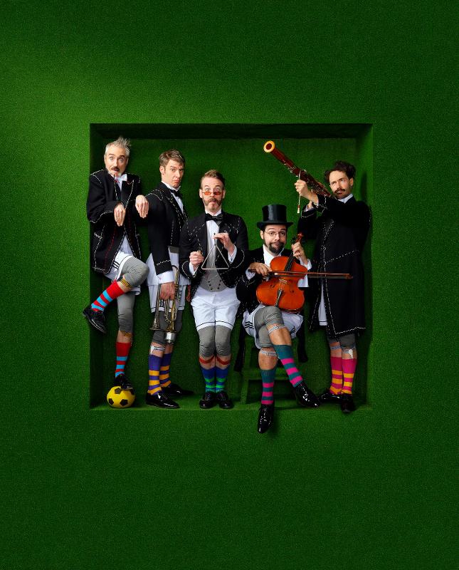 Släpstick bietet in seinem aktuellen Programm „The Roaring Twenties“ eine hinreißende Hommage an die Stummfilm-Ära. Konzert, Zirkus und Theater vereinen sich zu einer turbulenten und grandios inszenierten Show. Die fünf Vollblutmusiker aus Holland sorgen mit ihrer musikalischen Comedy für Lachmuskelkater und Ohrwürmer bei Auftritten quer durch Europa. So reißen sie beim Schleswig-Holstein Musik Festival ebenso wie im Prinzregententheater in München das Publikum von den Sitzen und haben etliche internationale Preise gewonnen, darunter auch der Spirit of the Fringe Award beim Festival in Edinburgh.