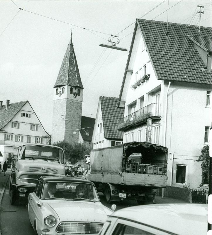 Die Führung geht auf Spurensuche zur Mobilität im Ortskern von Bernhausen.