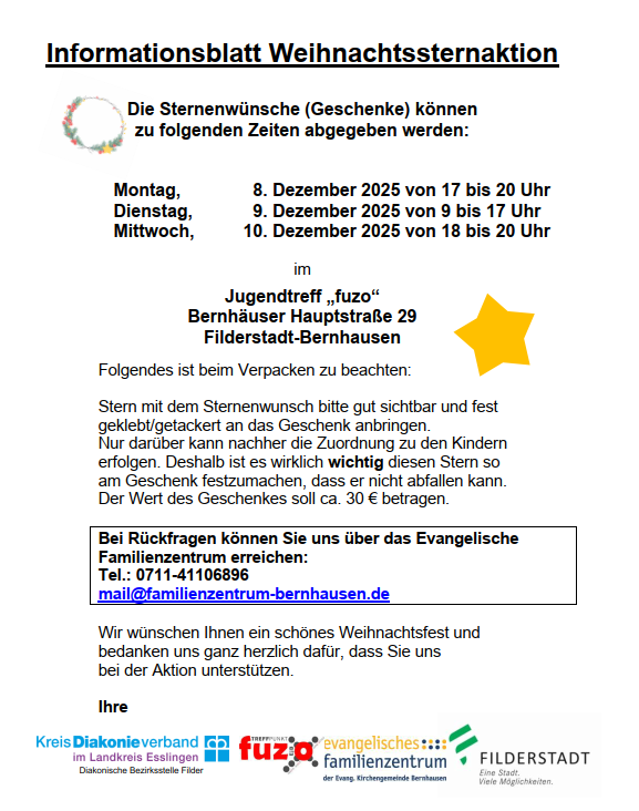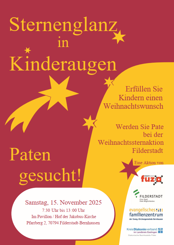 Mit der Weihnachtssternaktion soll Kindern aus bedürftigen Familien in Filderstadt ein Weihnachtsgeschenk ermöglicht werden. Das Budget für Menschen, die von staatlicher Unterstützung leben, ist sehr eng bemessen. Da bleibt für die Bedürfnisse der Kinder, die über Kleidung und Nahrung hinausgehen, kaum Spielraum.