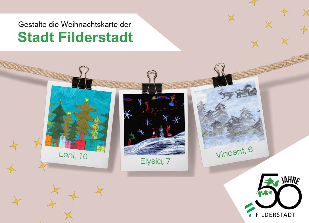 Und mitmachen lohnt sich! Die Siegerbilder werden auf den offiziellen digitalen Weihnachtskarten der Stadt Filderstadt sowie im Amtsblatt und auf den Sozialen Medien veröffentlicht. Die Gewinner*innen erhalten – passend zur Jahreszeit – ein kleines Weihnachtsgeschenk: wahlweise einen Gutschein fürs Fildorado oder fürs Kindertheater der FILharmonie. Jetzt mitmachen und offizielle Weihnachtskarten der Stadt gestalten! (ih)