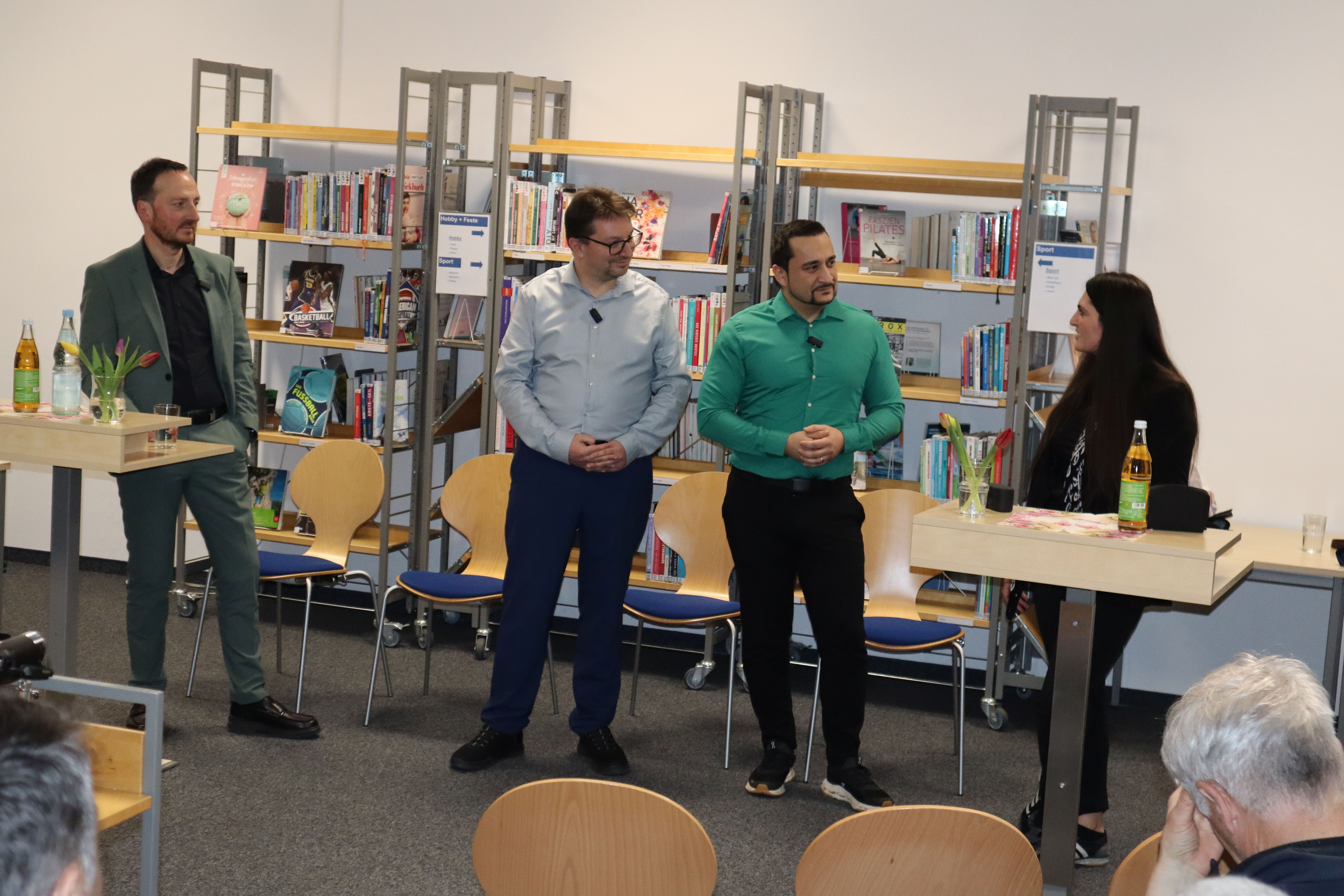 FILDERSTADT. Zwei Männer, Freunde, Deutsche, Filderstädter und Wissenschaftler „talken“ regelmäßig über aktuelle Themen aus den unterschiedlichsten Perspektiven – mal lustig, auch mal streitbar, aber niemals „trocken“ oder „radikal“. Die Rede ist von Dr. Michael Blume (Beauftragter der baden-württembergischen Landesregierung gegen Antisemitismus) und Professor Inan Ince (Betriebswirt, Wirtschaftswissenschaftler sowie Ex-Manager in der Unternehmensberatung). Dieser Tage haben die beiden ihr bekanntes Dialogformat verlassen und zwei Gäste zur Live-Aufzeichnung ihres Podcasts „2 Stimmen, 4 Kulturen“ in die Stadtbibliothek nach Bernhausen eingeladen – zum einen Filderstadts Oberbürgermeister Christoph Traub, zum anderen Dilnaz Alhan (Freie Journalistin und Menschenrechtsaktivistin). Der Titel der Folge 52: „Kurdistan und Syrien im Fokus“.