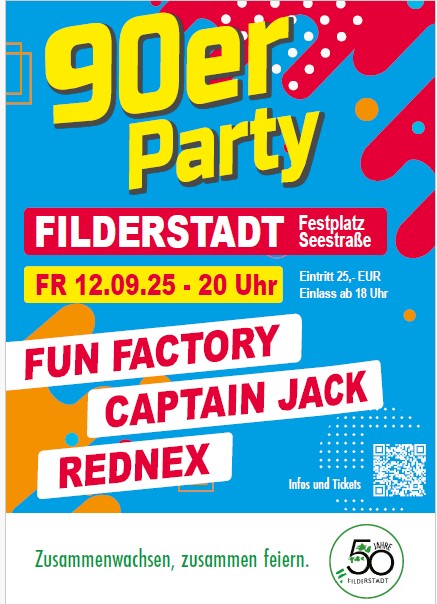 FILDERSTADT. Diesen Termin sollten Klein und Groß, Jung wie Alt, Gäste aus nah und fern nicht verpassen: Vom 12. bis 14. September 2025 steigt auf dem Festgelände gegenüber der Reithalle an der Seestraße in Sielmingen das große Stadtfest. Der Anlass für die Mega-Veranstaltung: der Geburtstag „50 Jahre Filderstadt“. Herzliche Einladung!
