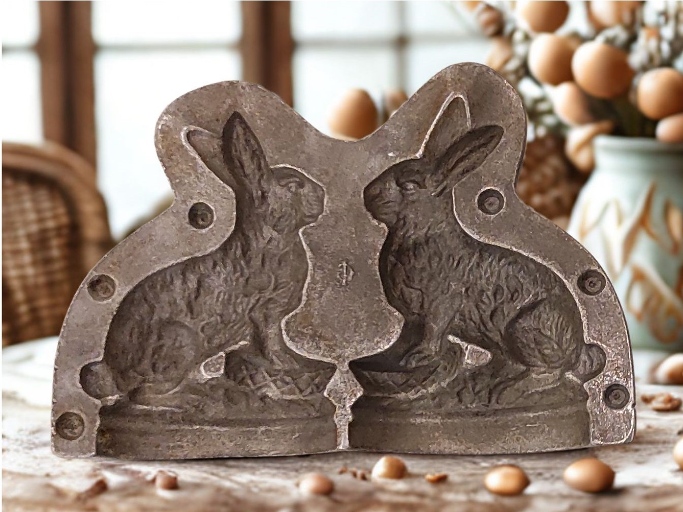 Ostern – eine süße Zeit, die vielfach ist geprägt durch Schokolade- und Zuckerhasen. Aus der Sammlung von Jürgen und Hannelore Pintscher ist diesmal eine große Zahl von Formen für Biskuit, Zucker oder Schokolade zu bewundern. Solche Formen wurden seit den 1870er Jahren in unzähligen Variationen hergestellt. Eine gewisse Berühmtheit erlangte in Dresden die Firma Anton Reiche, die Weißblech- und Gussformen für Hasen, Hühner, Eier und vieles mehr herstellte. Sie zählte um 1910 mehr als 1100 Mitarbeiter.